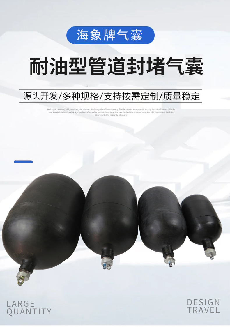 結(jié)構(gòu)特性:耐油石油管道封堵氣囊由囊體和囊嘴組成,囊體內(nèi)部有多層尼龍骨架布,增強了氣囊的強度和耐用性。囊體與金屬囊嘴結(jié)為一體,使得氣囊在連接和固定時更加牢固。